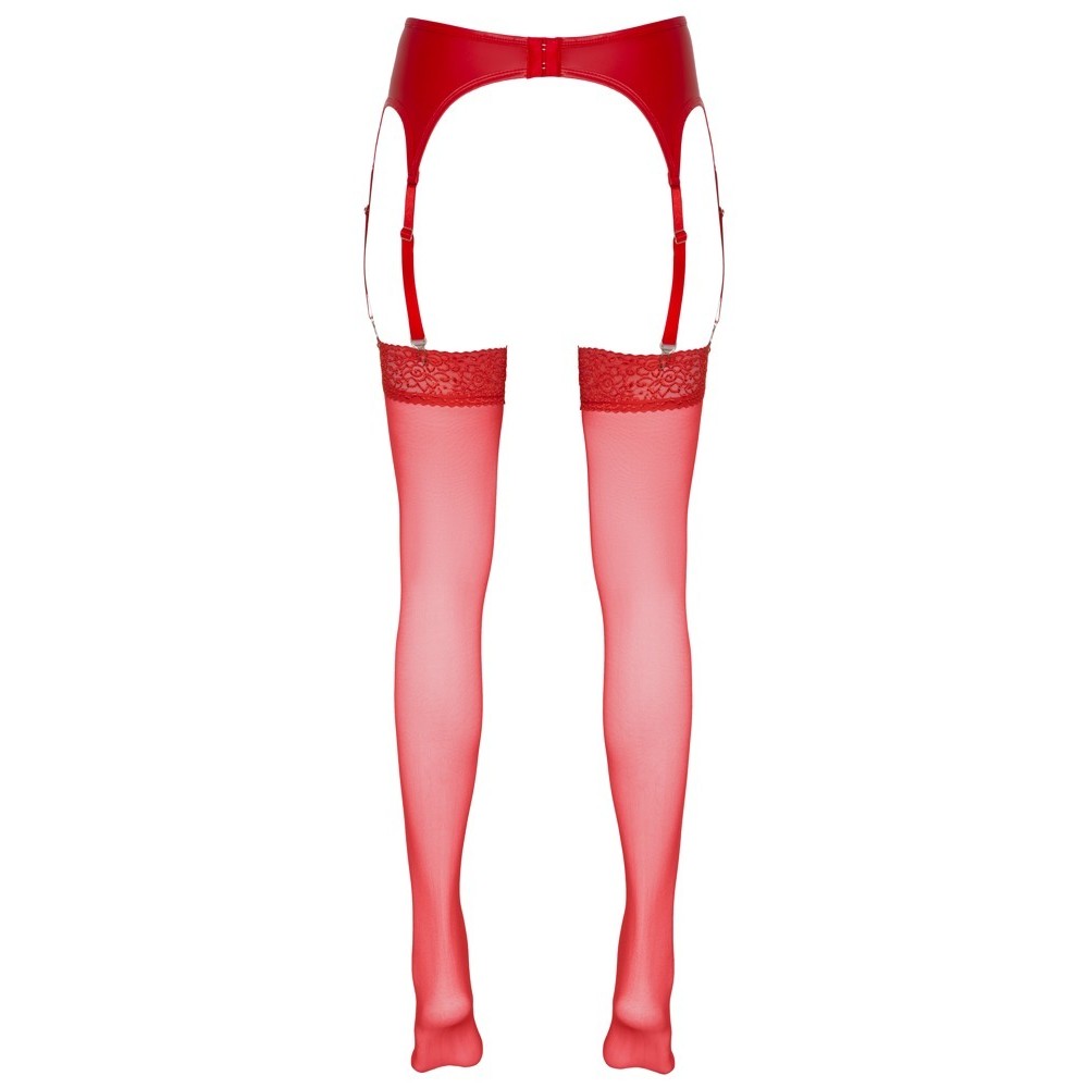 Weiche, samtige Strümpfe, die an einem Strumpfgürtel befestigt werden müssen. Sie haben eine sehr auffällige rote Farbe und einen 7 cm breiten oberen Rand. 20 Denier. Oeko-Tex-zertifiziert.