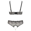 Der BH ohne Bügel verfügt über einen Hakenverschluss am Rücken, verstellbare Träger und elegante Perlenketten über den Brüsten, die ihm einen einzigartigen Charme verleihen. Der dazu passende String hat zwei Perlenketten über dem vollständig offenen Schrittbereich für einen sinnlichen und raffinierten Effekt.