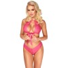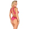 Verführerisches Set von Kissable, bestehend aus einem weichen BH und einem String mit eleganten Satinbändern. Der BH ist vorne mit einer Schleife verziert, während der String am V-Ausschnitt oberhalb des Schambereichs eine Schleife aufweist. Komplett aus feiner, weicher und elastischer rosa Spitze gefertigt, für höchsten Tragekomfort. Der BH verfügt über einen Hakenverschluss am Nacken und am Rücken für eine perfekte Passform.
