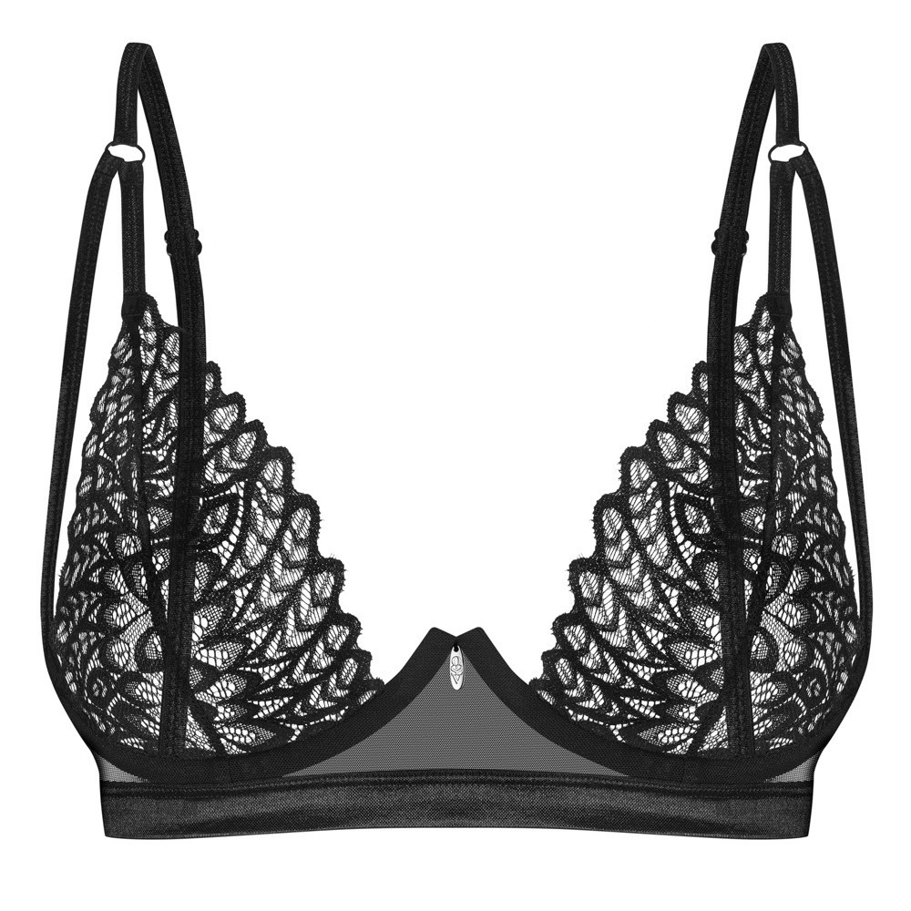 Der schwarze Bügel-BH Donarella von Obsessive ist aus zartem, aber elastischem besticktem Tüll gefertigt. Die weichen, elastischen Cups schmiegen sich bequem an die Brüste an. Zwischen den Cups befindet sich ein kleines dekoratives Element, das ein echter Blickfang ist. Der Verschluss ist hinten schneller zu schließen und die Träger können individuell angepasst werden.