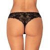 Der schwarze Tanga „Serafia“ von Obsessive besticht durch sein feminines und provokantes Design und ist aus zarter floraler Spitze gefertigt. Er ist rundum weich und elastisch und schmiegt sich perfekt an den Körper an, um absoluten Tragekomfort zu bieten. Er verfügt über ein kleines Schmuckelement an der Vorderseite des Taillenbands, das für einen Hauch von Glanz und Raffinesse sorgt.