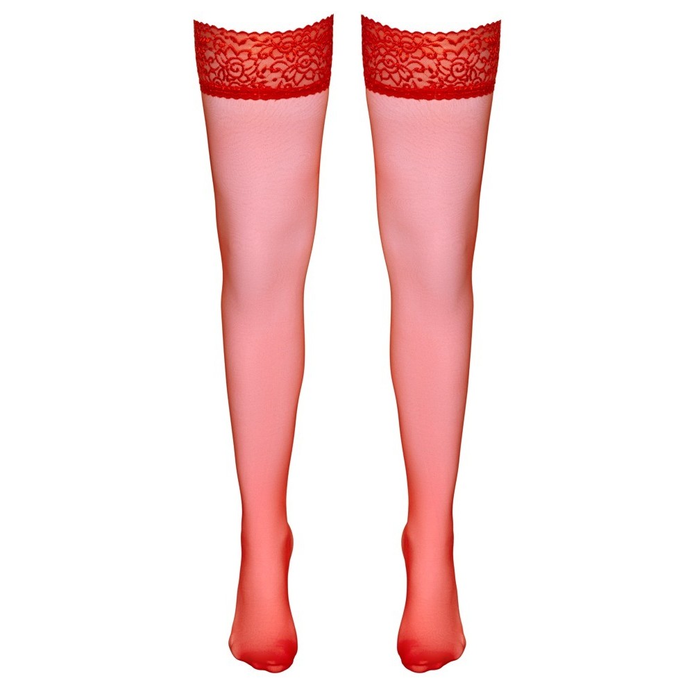 Strumpfhosen mit 7 cm hohem Spitzenbund in leuchtendem Rot, ideal, um Ihre Beine mit einem verführerischen Touch zu betonen. 17 Denier, Oeko-Tex-zertifiziert.
