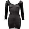 Körpernahes Lingerie-Kleid aus transparentem, verführerischem Nylon. Es verfügt über einen tiefen Ausschnitt vorne und hinten, der durch eine elegante goldene Naht hervorgehoben wird, die dem Look einen Hauch von Raffinesse verleiht.