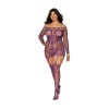 Fishnet and decorative scalloped lace garter dress with attached fishnet stockingsOff-the-shoulder neckline with peek-a-boo detailG-string not included/