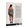 Long sleeved mini dress with contrast net fabric. Cut-out O shapes under the buste and contrast opaque accent that accentuates the body. This dress has some stretch and can be worn from size XL to 4XL.
