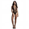 Teddy with a combination opaque and net. It has a deep-V neckline. This teddy has some stretch and can be worn from size S to L.