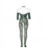 Longsleeved bodystocking with lace pattern and open crotch. Can be worn on or off-shoulder. This bodystocking has some stretch and can be worn from size XL to 4XL.