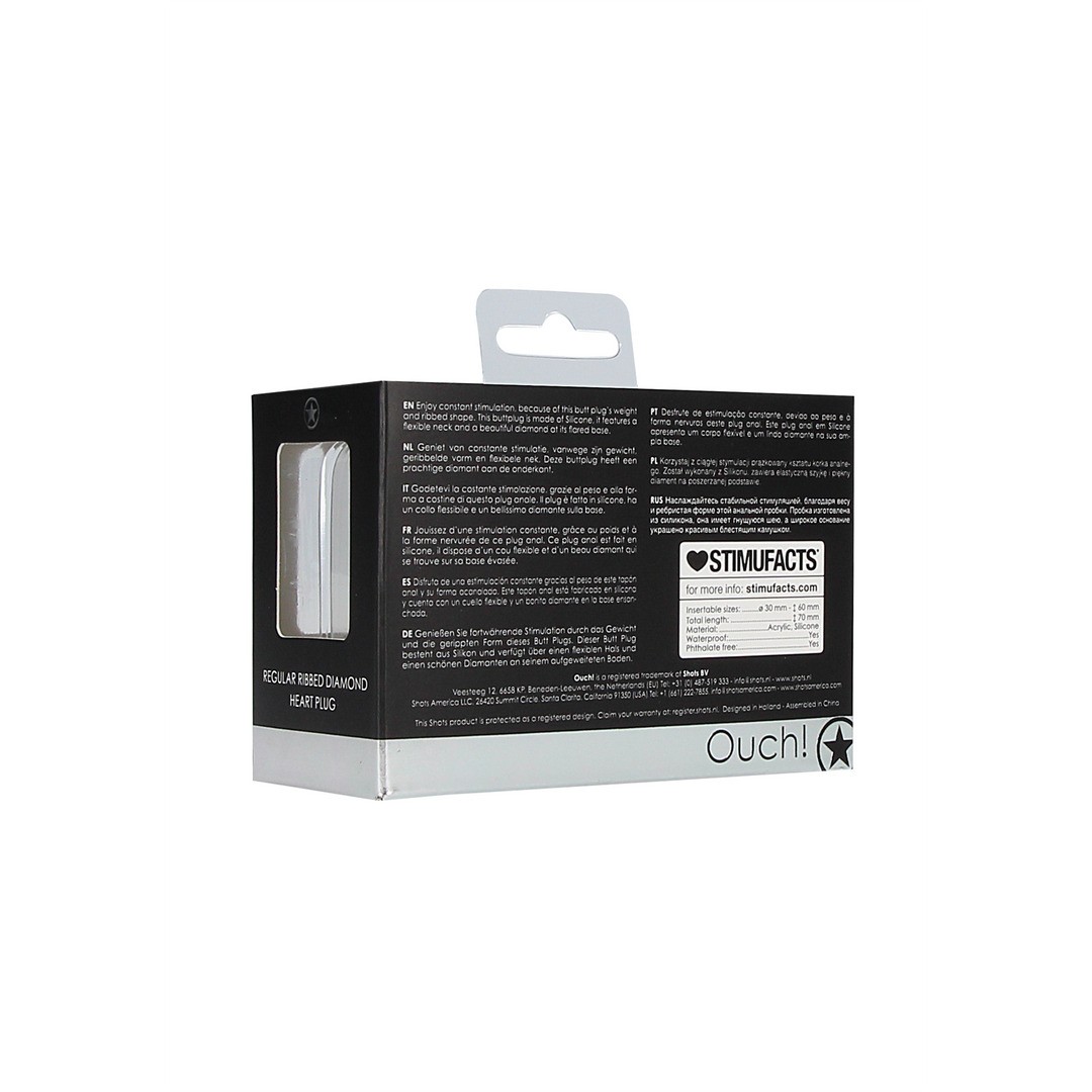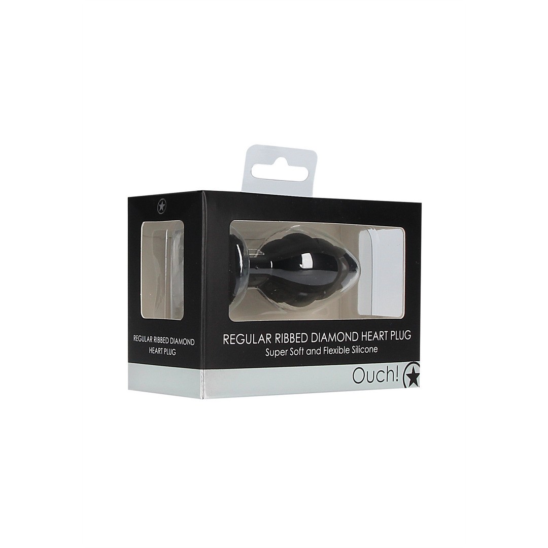 Explora nuevas sensaciones con este plug anal de silicona, de forma clásica con nervaduras y base adornada con un deslumbrante diamante.