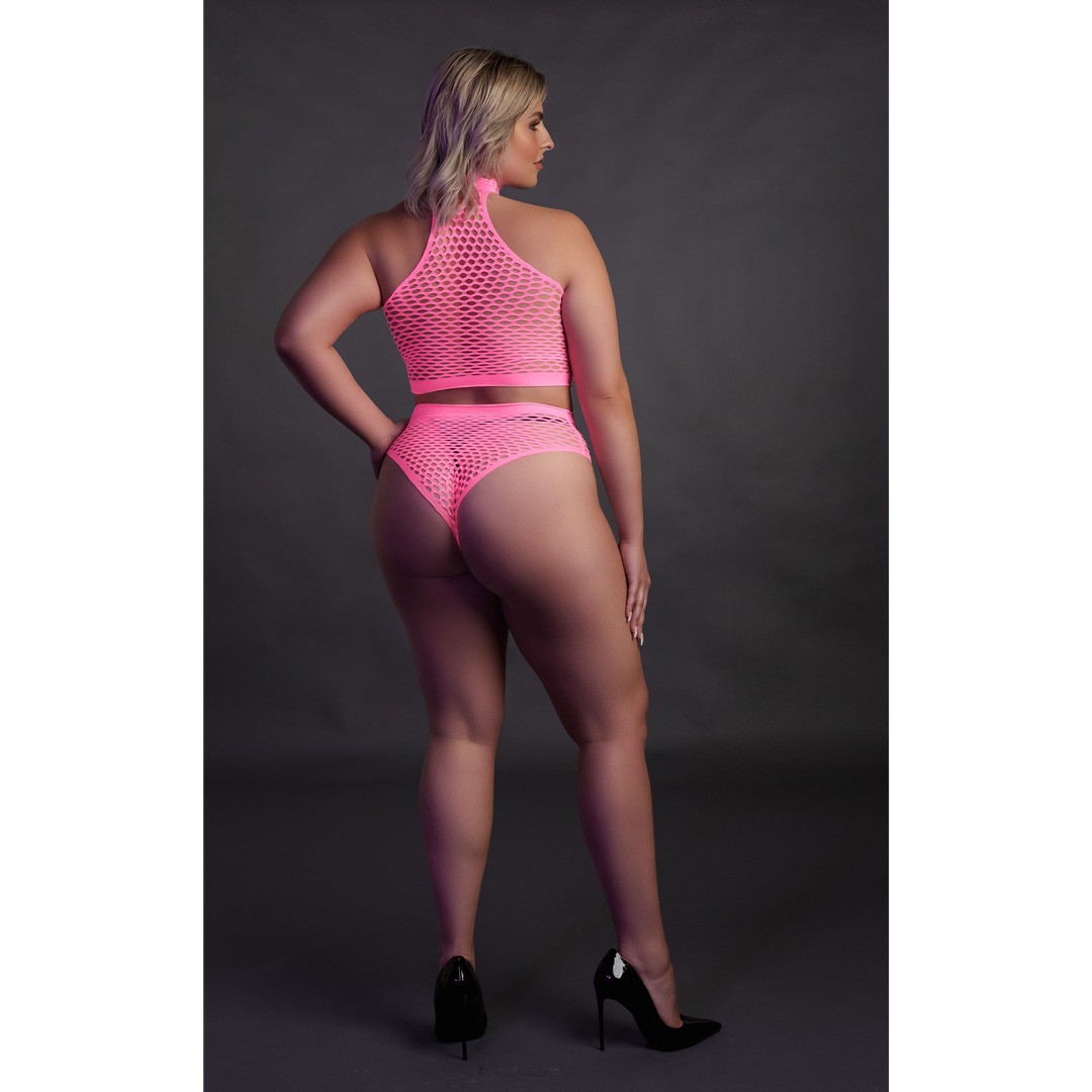 Our Neon lingerie is the perfect addition to your collection. Made with comfortable, easytofit, stretchy materials they are designed to fit your body perfectly. Whether you're using them as party wear or as lingerie, this eye-catching piece will make sure you stand out! Unleash your inner goddess with this stunning UV activated lingerie. This piece consist of a turtle neck crop top and high waist panty. An amazing party-wear that gives you that wow-factor and makes you stand out. The UV activated materials adds a touch of mystery and allure. Easy to fit because of the stretchy materials will make you light up the night. Available in neon pink and neon green. Sizes run from XS/ XL to XL/XXXXL