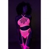 Our Neon lingerie is the perfect addition to your collection. Made with comfortable, easytofit, stretchy materials they are designed to fit your body perfectly. Whether you're using them as party wear or as lingerie, this eye-catching piece will make sure you stand out! Unleash your inner goddess with this stunning UV activated lingerie. The Grecian neckline gives it that wow-factor and makes you stand out but watch those amazing garter belt stocking that are included. The UV activated materials adds a touch of mystery and allure. Easy to fit because of the stretchy materials will make you light up the night. Available in neon pink and neon green. Sizes run from XS/ XL to XL/XXXXL