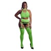 Vibrant Crop Top: Elevate your style with the Neon Two-Piece featuring a vibrant crop top that adds a playful and eye-catching element to your ensemble.Coordinated Stockings: The set includes matching stockings, creating a cohesive and chic look that's perfect for both party occasions and intimate moments.UV-Activated Allure: Stand out in the crowd with the UV-activated materials, making this ensemble light up the night in neon pink or neon green and adding an alluring touch of mystery to your look./