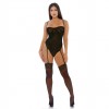 Body en malla de leopardo con copas con aros, pernera alta y tirantes de liga.