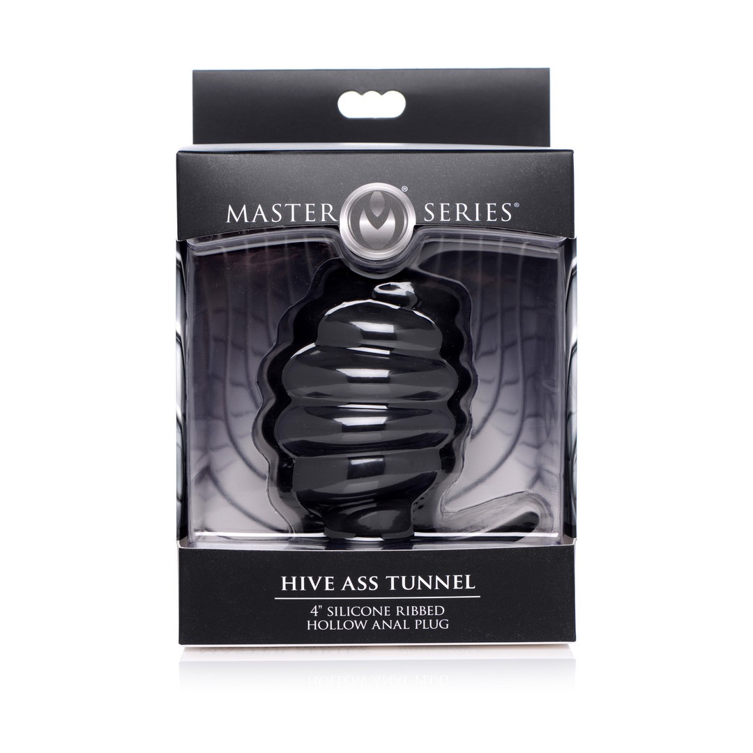 Plug anal hueco con estrías estimulantes y túnel central, ideal para juegos anales intensos y exploración profunda.