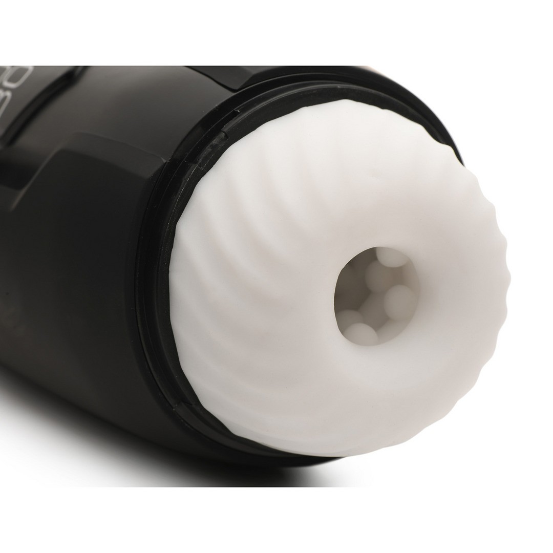 Potente masturbador con vibración y empuje automáticos, funda de TPE texturizada y cuerpo ergonómico. Es recargable y a prueba de salpicaduras.
