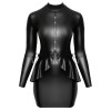 Eng anliegendes Minikleid von Cottelli BONDAGE mit langen Ärmeln aus schwarzem, mattem Material mit leichtem Glanz. Der Stoff ist weich und elastisch und sorgt für eine sehr bequeme Passform. Es verfügt über diskrete Reißverschlüsse über den Brüsten, die geöffnet werden können, sowie einen Reißverschluss am Rücken, um das An- und Ausziehen zu erleichtern. Unter dem Rollkragen befindet sich eine Öse zum Befestigen der verstellbaren Brust- und Taillenriemen. Der Taillengürtel mit Schößchen verfügt über seitliche Ringe zum Befestigen der mitgelieferten Armfesseln mit Druckknöpfen. Die Armfesseln lassen sich dank Klettverschlüssen schnell anbringen oder abnehmen. Die Brust- und Taillenriemen sind ebenfalls abnehmbar.