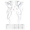 Está compuesto por dos piezas y presenta un sofisticado diseño de tul negro semitransparente y encaje elástico con estampado floral que se amolda suavemente a las curvas del cuerpo.
