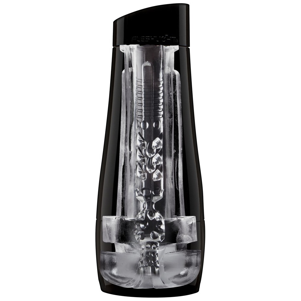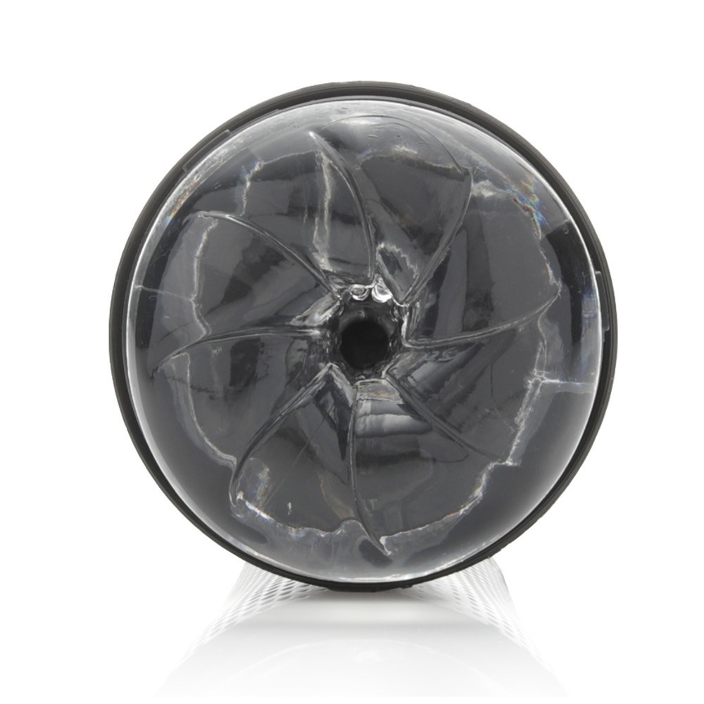 Transparent masturbator with dotted, grooved sleeve and tight anal opening in a black case. Complete length and insertion length 20 cm. Flexible diameter. Material: TPE. Lubricant sample and instructions included.