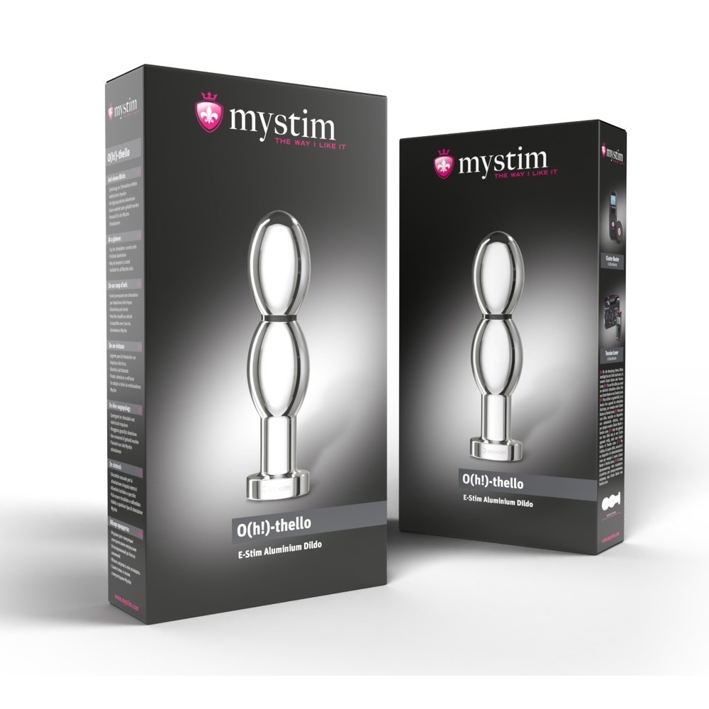 The beautiful bipolar dildo O(h!)-thello, compatible with Mystim's Tension Lover or Pure Vibes stimulation devices, can be used in both the vagina and anus and stands out for its smooth curves. Inserting the first pearl of this dildo provides intense stimulation, while the rounded shapes continue to excite with every movement or slight muscle contraction. When inserting the O(h!)-thello deeper, a pleasant electrical stimulation runs through the nerves, providing a gentle tingling sensation, a rhythmic pulsation or sensual impulses, depending on the setting. Contracting the muscles immediately intensifies the stimulation, allowing you to control your arousal and reach ecstasy without using your hands.