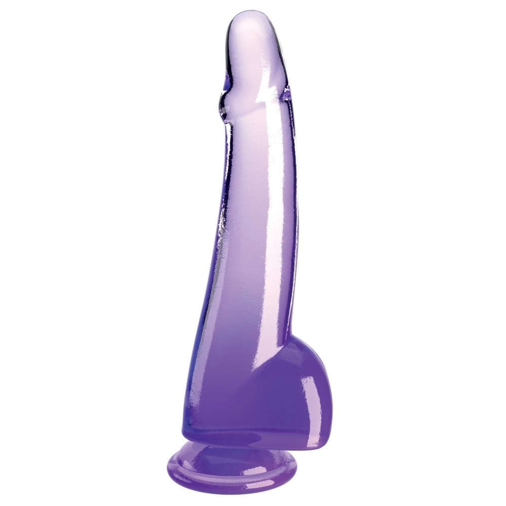 The flexible, transparent Cock 10" dildo with testicles from King Cock Clear features a realistic, detailed design with a generous head. The strong suction cup under the testicles adheres firmly to any smooth surface, allowing for hands-free pleasure. In addition, it is compatible with most strap-ons and harnesses.