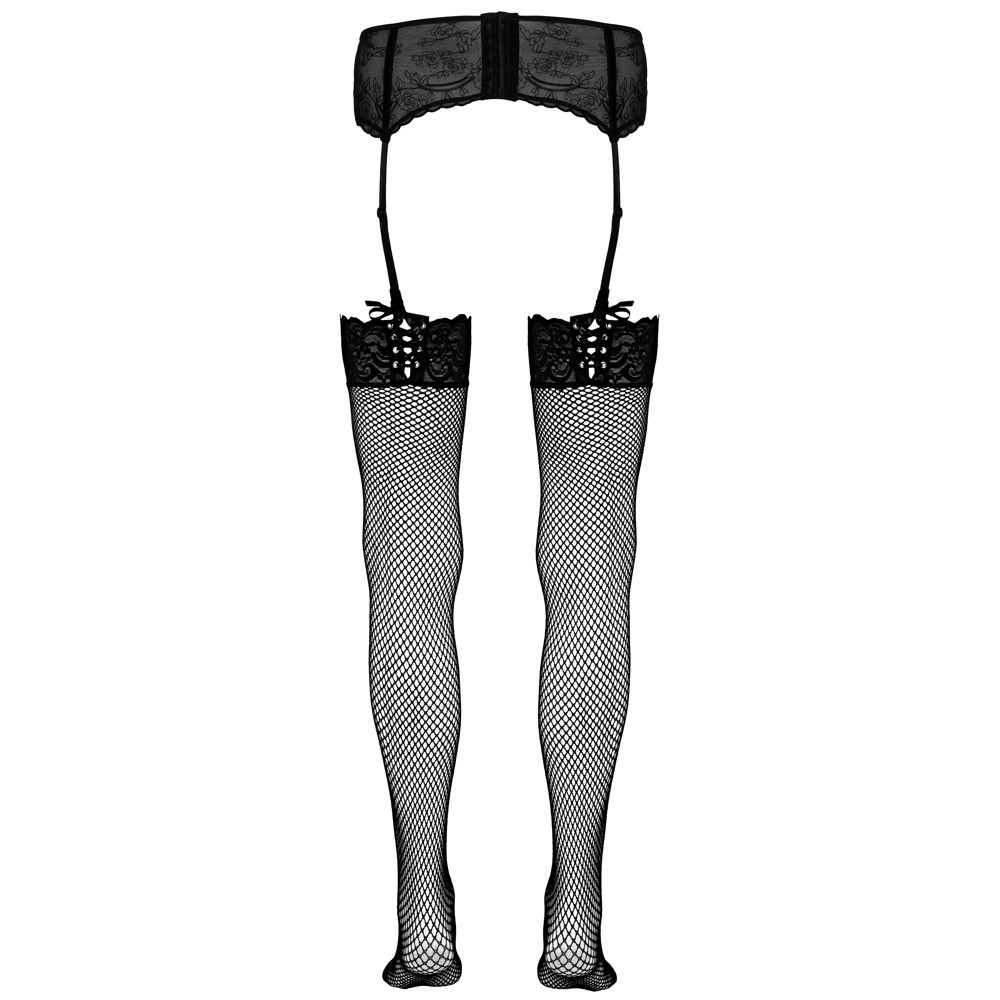Delicate fishnet stockings that enhance the beauty of the legs. The classic lace top is embellished with a decorative bow at the back, adding an elegant and seductive touch. A true essential for those who appreciate style and sophistication.