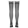 Garter tights with a striking ring pattern at the top, creating a unique and modern visual effect. The silicone gripper on the inside ensures a secure, non-slip fit. With a 17 denier weight and Oeko-Tex certification, they offer lightness and comfort.