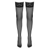Garter stockings with an elegant 8 cm wide lace trim and decorative stitching at the back, adorned with a delicate lily motif at the top and bottom. The silicone gripper on the inside ensures a secure, non-slip fit. Lace designs are subject to change.