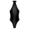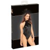 Noir's figure-hugging bodysuit in black power wetlook fits like a second skin. Soft and highly elastic, it guarantees maximum comfort. Fitted, strapless design with a high neckline decorated with rhinestones for a luxurious touch. The two-way zip fastening runs the entire length from the collar, through the crotch area and ends above the buttocks. The extra-high cut legs provocatively enhance the legs and bum.