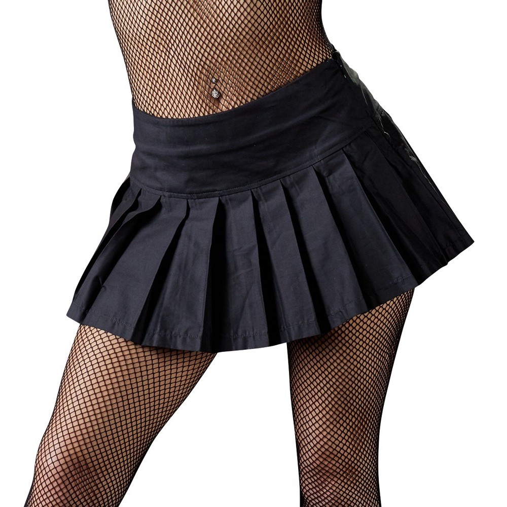 Black pleated miniskirt with a small zip fastening at the side.