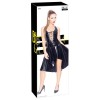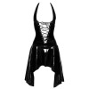 The Black Level halter dress is made entirely of shiny black vinyl, with a tight fit that enhances the silhouette. The deep V-neckline is adorned with a sexy bow that covers only the nipples, adding a bold and provocative touch. The skirt has a wide, swinging hem, shorter at the front than at the back, for an elegant and sensual effect. Includes a zip at the back and a press stud at the centre neckline for a secure and versatile fit.