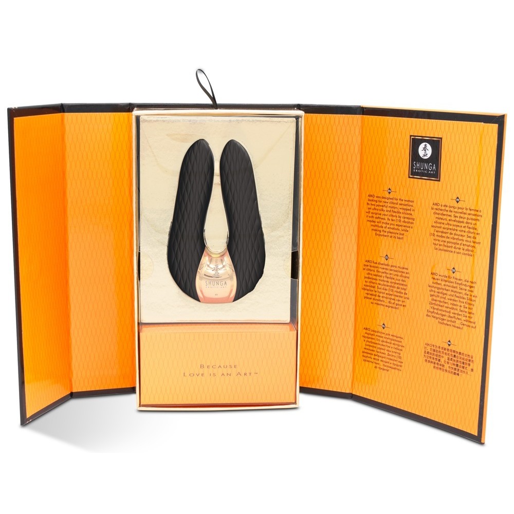 Shunga's Aiko luxury double vibrator features a sophisticated and elegant design with two flexible vibrating fingers. It provides simultaneous stimulation of the vagina and clitoris during solo use, or stimulates erogenous zones such as nipples, testicles and penis when used as a couple. With a perfect ergonomic shape and made from medical-grade silicone, the soft and silky Aiko adapts harmoniously to the body and movements, ensuring maximum comfort and pleasure.