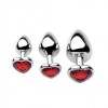 Set of 3 metal plugs with heart-shaped jewels, ideal for training and progressive anal pleasure.