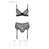 The Prímula set consists of three irresistible pieces: a bra, a delicate thong and a garter belt that adjusts perfectly to the body while maintaining the harmony of the design.