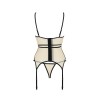The garment is accompanied by a thong that subtly complements the outfit. What's more, the possibility of adding stockings thanks to the straps adds extra charm and daring.