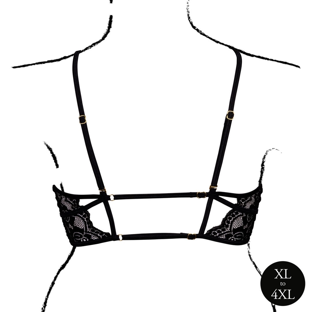 The Triangle open bra is the perfect fusion of sensuality and elegance, with lace detailing and adjustable straps for a perfect fit.