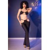 The top, adorned with gold rings, adds a touch of elegance, while the pants, with playful side cutouts, subtly reveal the hips, teasingly drawing attention.