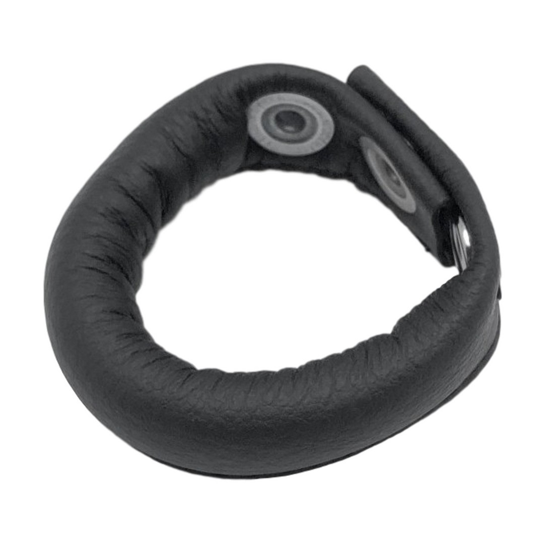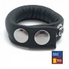 Leather testicle extender, designed to provide additional weight and controlled stimulation with comfort and safety.