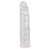 Funda para el pene con textura de espinas y venas, extra larga (se puede cortar para un ajuste perfecto). Incluye glande sólido para alargar el pene. Transparente.