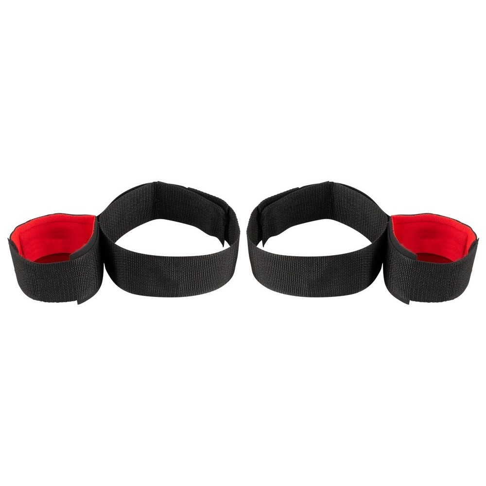 Las esposas están bien sujetas a las ataduras de los muslos. Ambas tienen cierres de gancho y bucle. El material exterior es de fibra sintética resistente al desgarro (100% poliéster), el material del interior es de algodón 100%. El interior está acolchado con espuma suave.