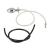 El plug anal hueco y pesado se conecta al plug peneano abierto mediante un tubo, ofreciendo una estimulación combinada única. Incluye un tubo de repuesto negro.