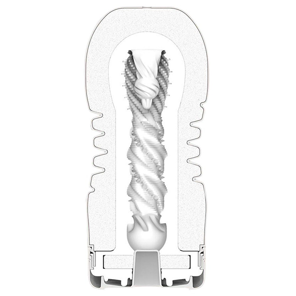 Las diferentes texturas internas, con variaciones de diámetro, proporcionan un masaje intenso y envolvente. La cabeza se puede doblar y girar gracias a la sección espiral flexible en el centro del masturbador, lo que permite una estimulación dirigida del glande a través de la esfera integrada. La innovadora abertura de vacío en el extremo crea sensaciones de succión realistas, similares al sexo oral. Después de retirar la pegatina de la abertura, es posible ajustar el vacío cubriendo o descubriendo el orificio con un dedo, según se prefiera.