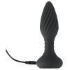 El plug anal con vibración Remote Controlled Butt Plug de ANOS presenta un diseño en espiral bien definido para un masaje anal intenso. Las esferas de masaje giratorias en la parte inferior del eje, junto con los puntos estimulantes a lo largo del cuerpo, actúan directamente sobre el ano, proporcionando sensaciones profundas y envolventes. La base está decorada con un pequeño espejo redondo dorado, que embellece la zona anal de forma elegante y provocativa.