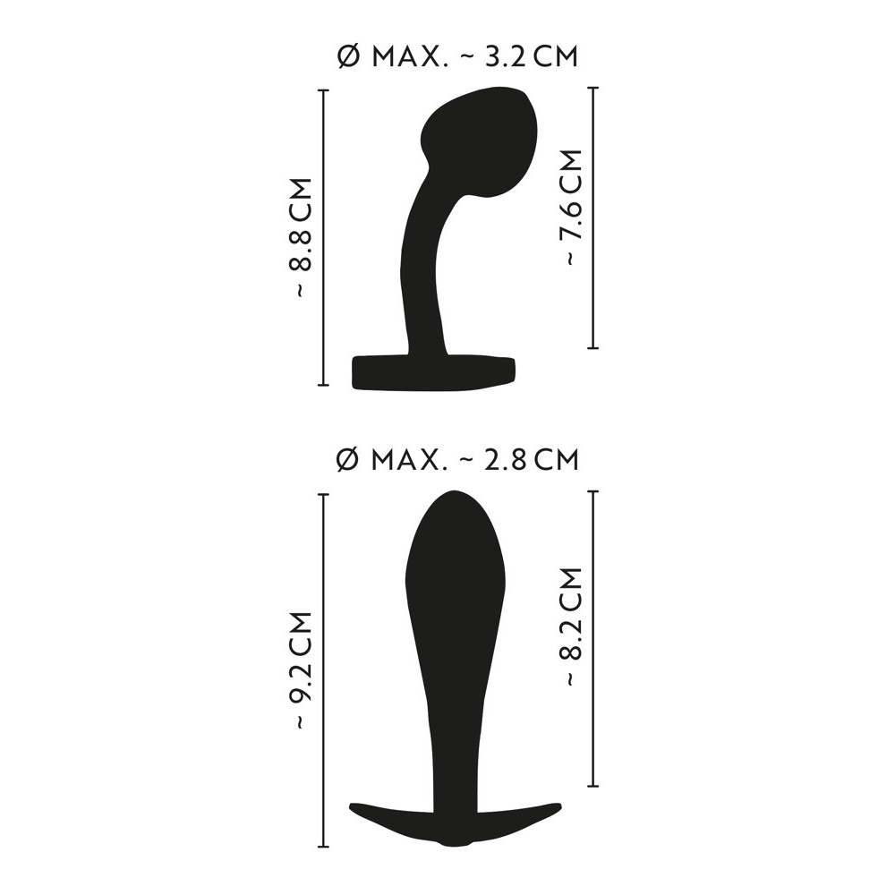 Ambos plugs tienen una superficie lisa y sin costuras, lo que garantiza una inserción cómoda. Cuentan con una base de anclaje ancha para mayor seguridad, lo que evita una inserción excesiva y permite un uso prolongado con total confianza. El modelo recto también incluye una gema azul decorativa en la base, lo que le da un toque visual atractivo.