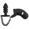 La jaula para el pene con plug anal de Black Velvets combina una jaula con un anillo para los testículos, unidos por una cadena resistente a un plug anal con ranuras. Además de la excelente sensación, la jaula ofrece un aspecto excitante y es un accesorio perfecto para los juegos de control y castidad.