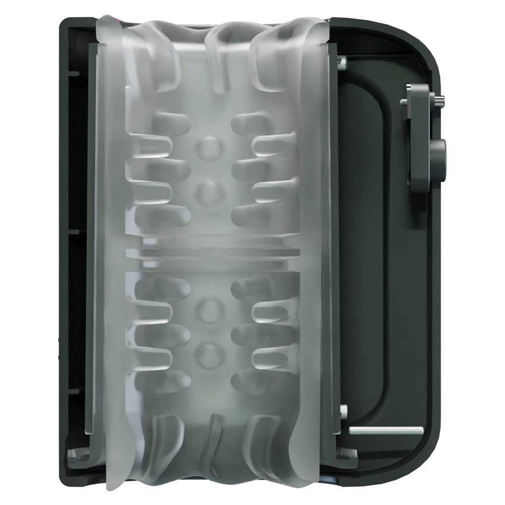 Práctico masturbador giratorio de Rebel, equipado con una funda interna suave y giratoria. Las numerosas protuberancias pronunciadas, suaves como la seda, giran alrededor del pene, proporcionando un masaje extremadamente excitante hasta el clímax. Una masturbación automática estimulante de una clase única.