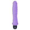 Vibrador con venas pronunciadas y glande saliente, con 7 niveles de vibración ajustables con solo pulsar un botón. Flexible.
