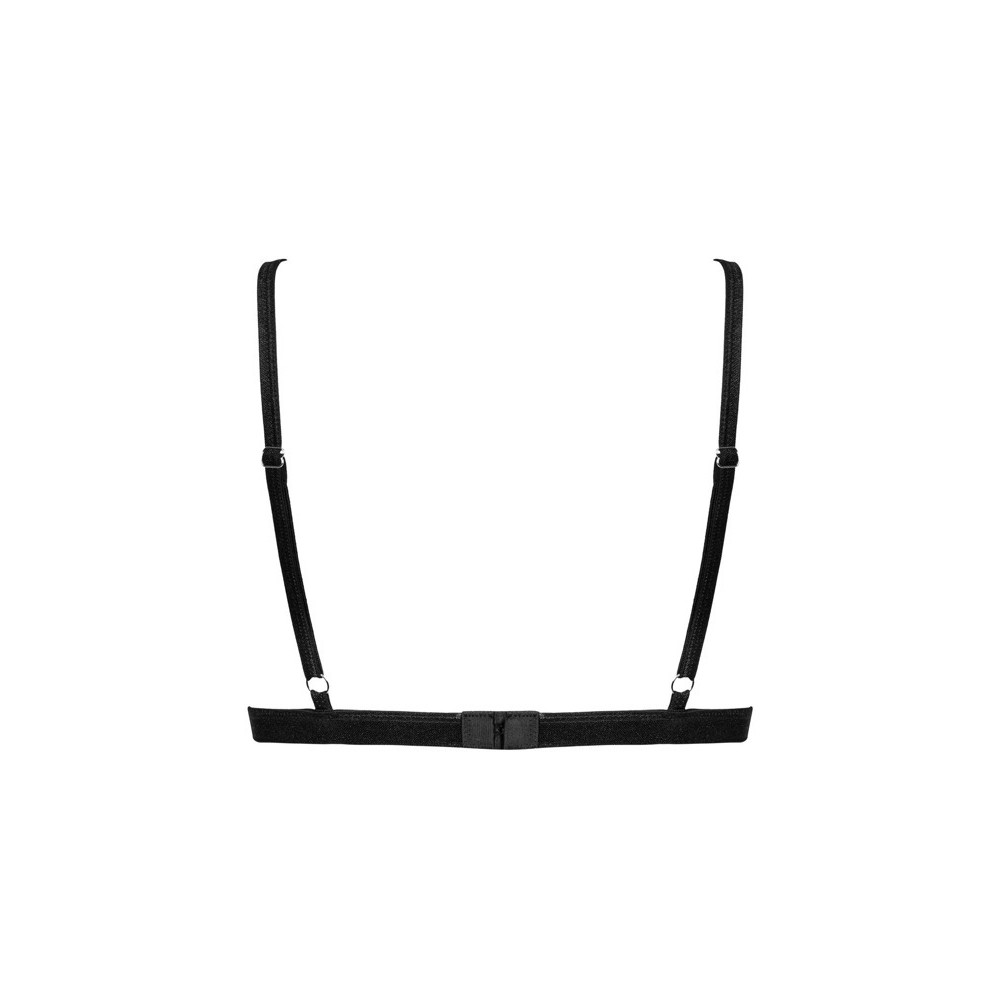 Un sujetador negro clásico, confeccionado en un delicado tejido de punto, que combina comodidad con una estética irresistiblemente tentadora gracias a su sutil transparencia. La elección perfecta para una noche llena de sensaciones intensas, justo lo que estás buscando.