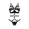 Body sin entrepierna negro Armares de Obsessive con efecto arnés. Presenta secciones con aspecto mojado, tiras elásticas y anillas decorativas, combinando sensualidad y estilo atrevido. Suave y elástico, proporciona una gran comodidad. Las copas con aros y atractivos recortes realzan el busto, mientras que los tirantes, el arnés de la cintura y el cierre de gancho en la espalda son ajustables para un ajuste perfecto. La entrepierna queda seductoramente abierta.