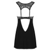 Picardías Donna Dream negro de Obsessive, con tanga a juego. Confeccionado en microfibra suave y elástica combinada con elegante encaje elástico. Modelo ligeramente fluido, con copas de encaje con aros que realzan el busto. La espalda presenta un escote profundo, delicados detalles de encaje y cierre de gancho ajustable. Los tirantes de encaje también son ajustables para un ajuste perfecto.