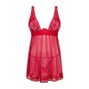 tanga: 90% poliamida, 10% elastano"; "¿Buscas un conjunto de lencería que encienda tus sentidos? El picardías y el tanga Lacelove son la receta perfecta para alcanzar altas temperaturas en el dormitorio. No hay más que ver el tejido transparente y los detalles de encaje en rojo intenso. Lista para una noche ardiente llena de pasión?