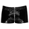 Lo clásico pantalón corto de Black Level están hechos enteramente de vinilo negro brillante. Son ligeramente elásticos, ofreciendo un ajuste justo pero cómodo. También presentan un práctico y provocativo cierre metálico acolchado en la parte delantera.
